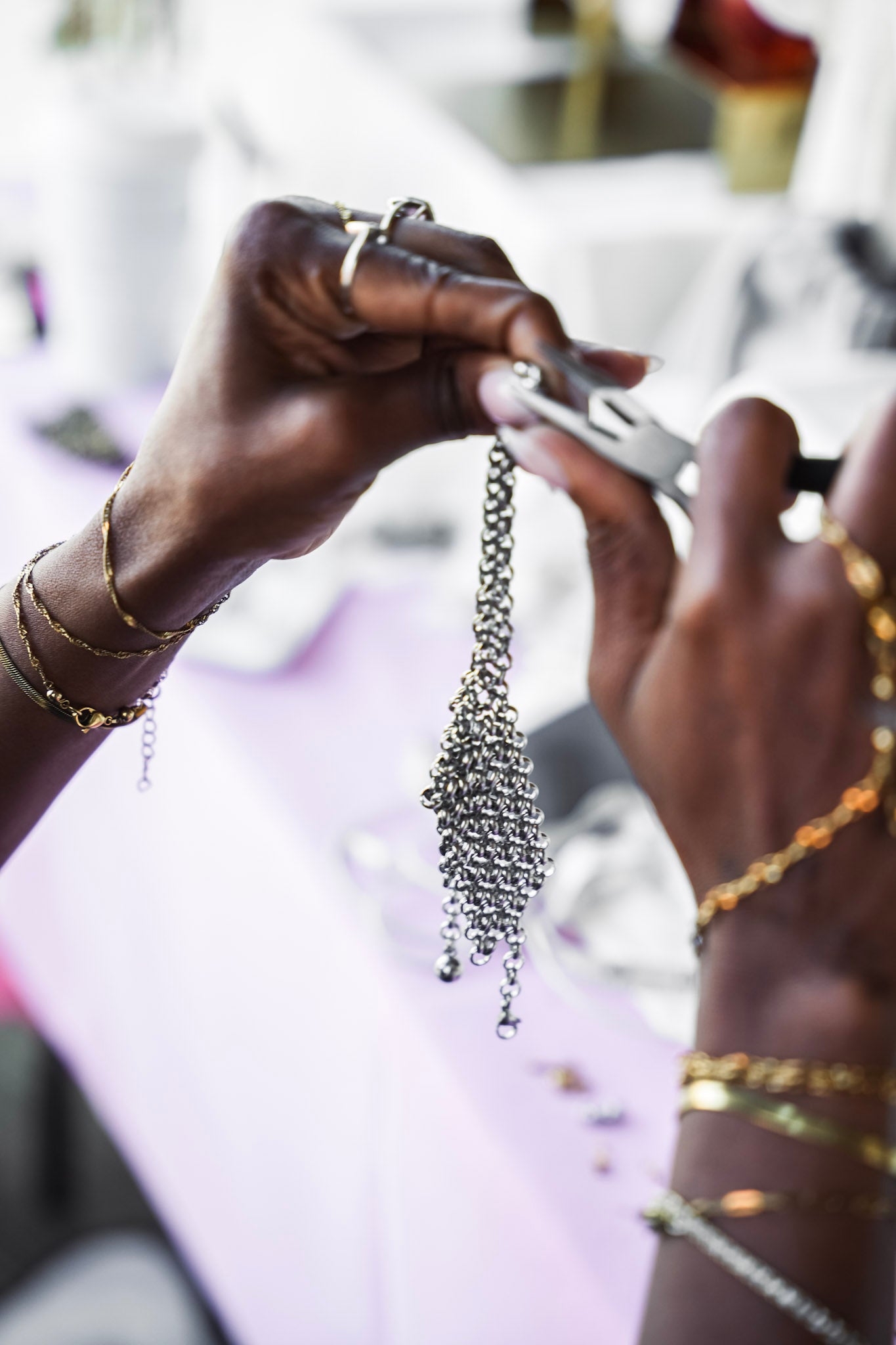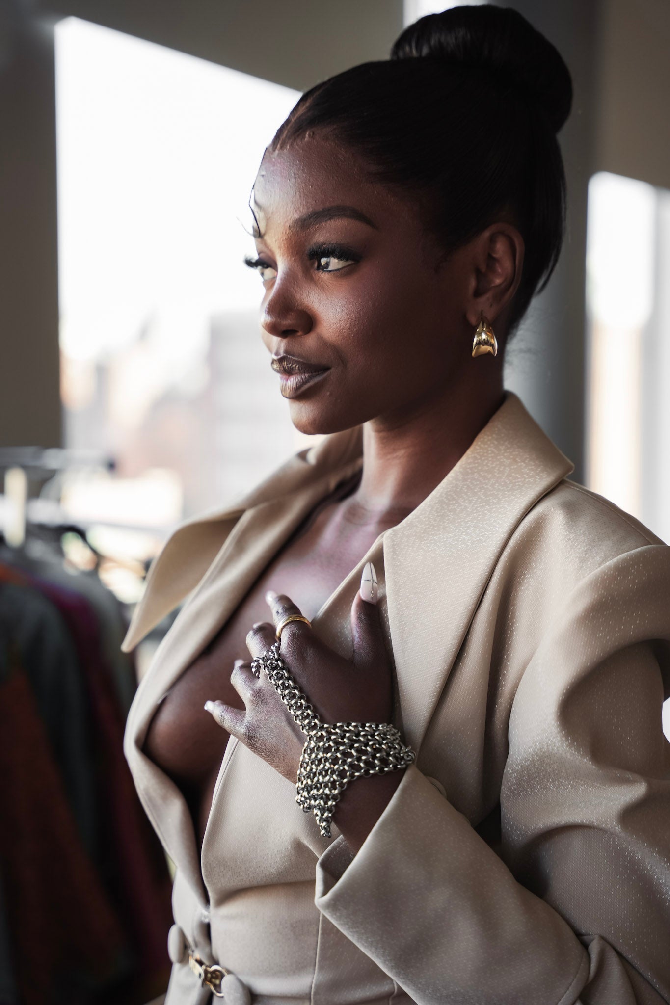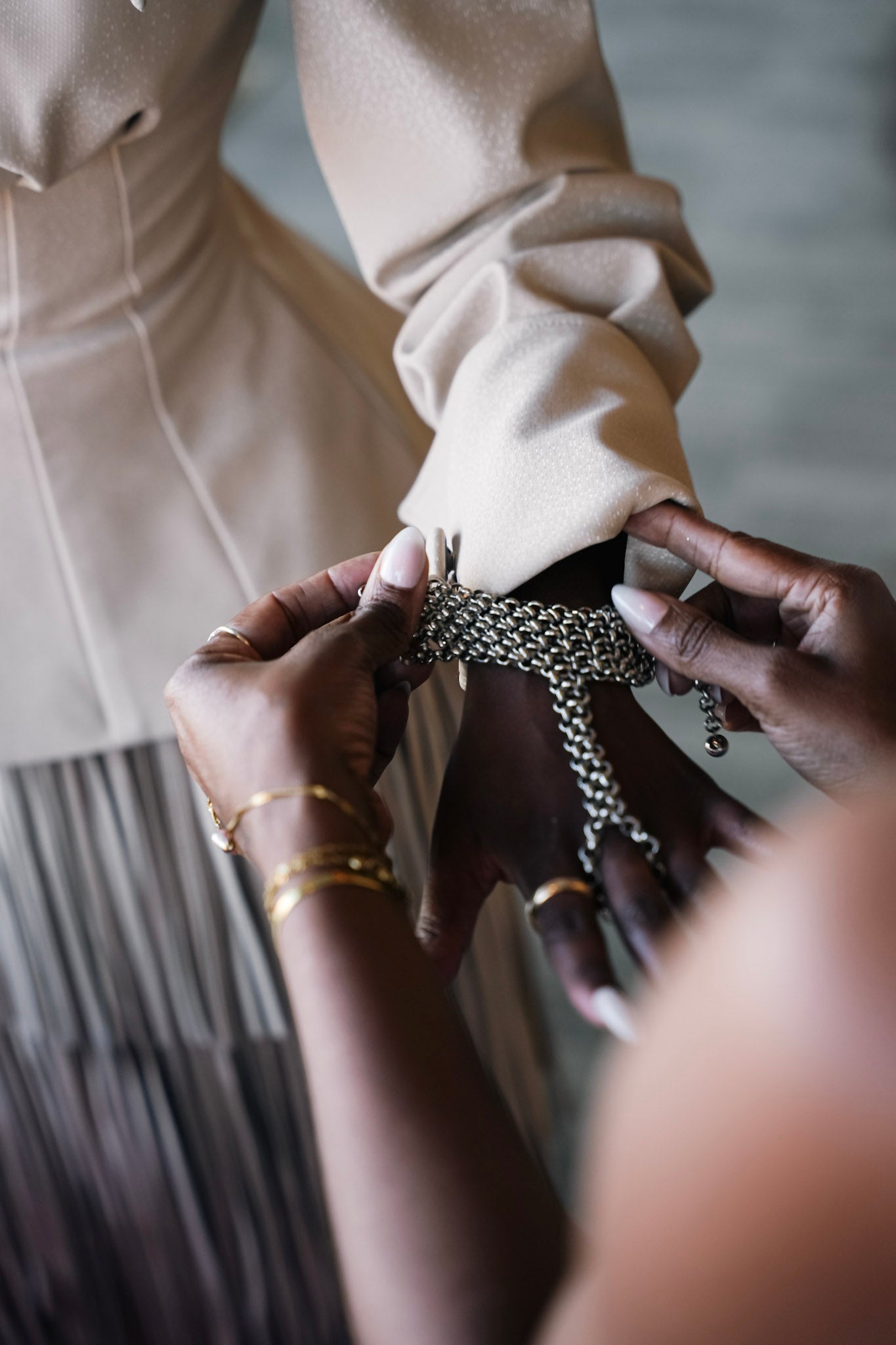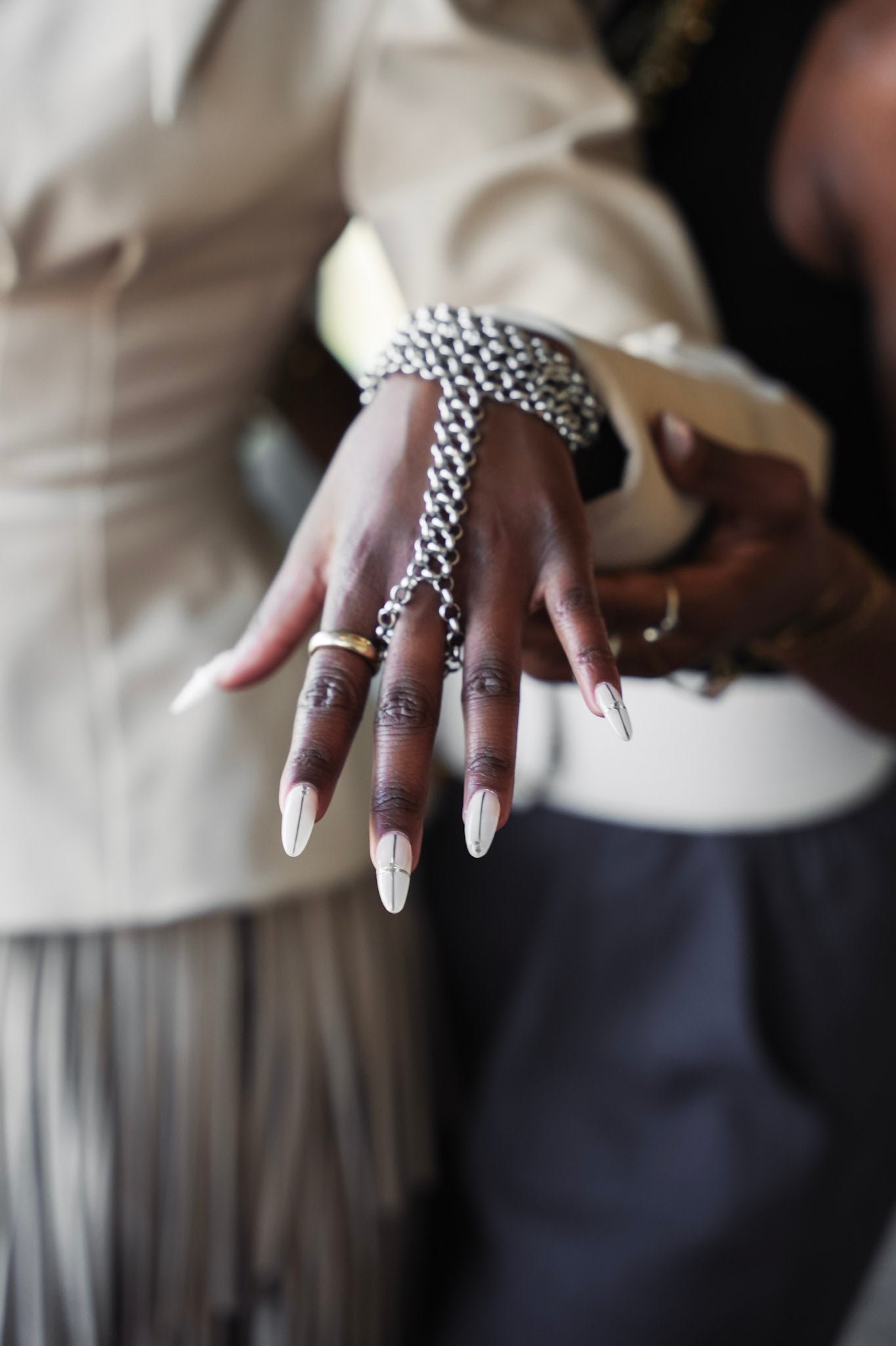 Whether paired with a structured blazer for a sharp, editorial look or worn as a standalone statement piece against bare skin, this hand chain is more than an accessory, it’s a conversation.
